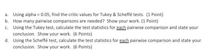 Solved Section 2 Post Hoc Test 14 Points Using Alpha 0 05 Find The Critic Values For Tukey Scheffe Tests 1 Point How Many Pairwise Comparisons Are Needed Show Your Work 1 Point